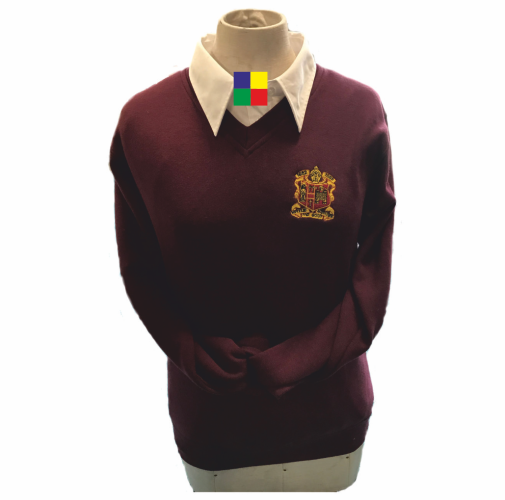 Bishop Gore V neck sweatshirt with Bishop Gore school logo embroidered on the left breast.