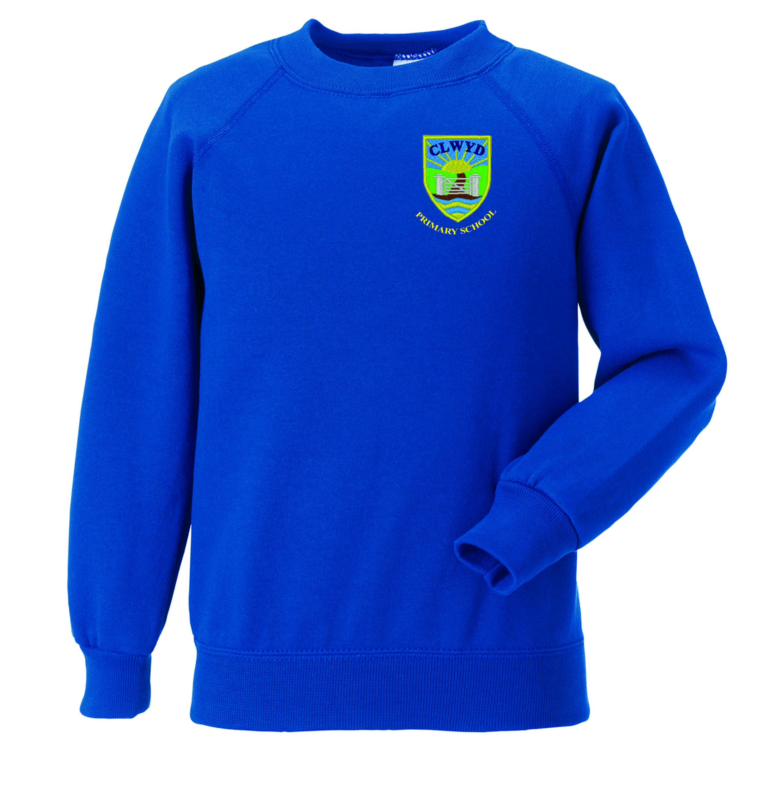 Clwyd primary school sweatshirt with Clwyd school logo embroidered on the left breast.
