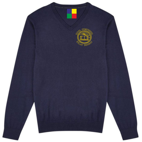 Dylan Thomas Comprehensive V Neck Sweatshirt with Dylan Thomas school logo embroidered on the left breast.