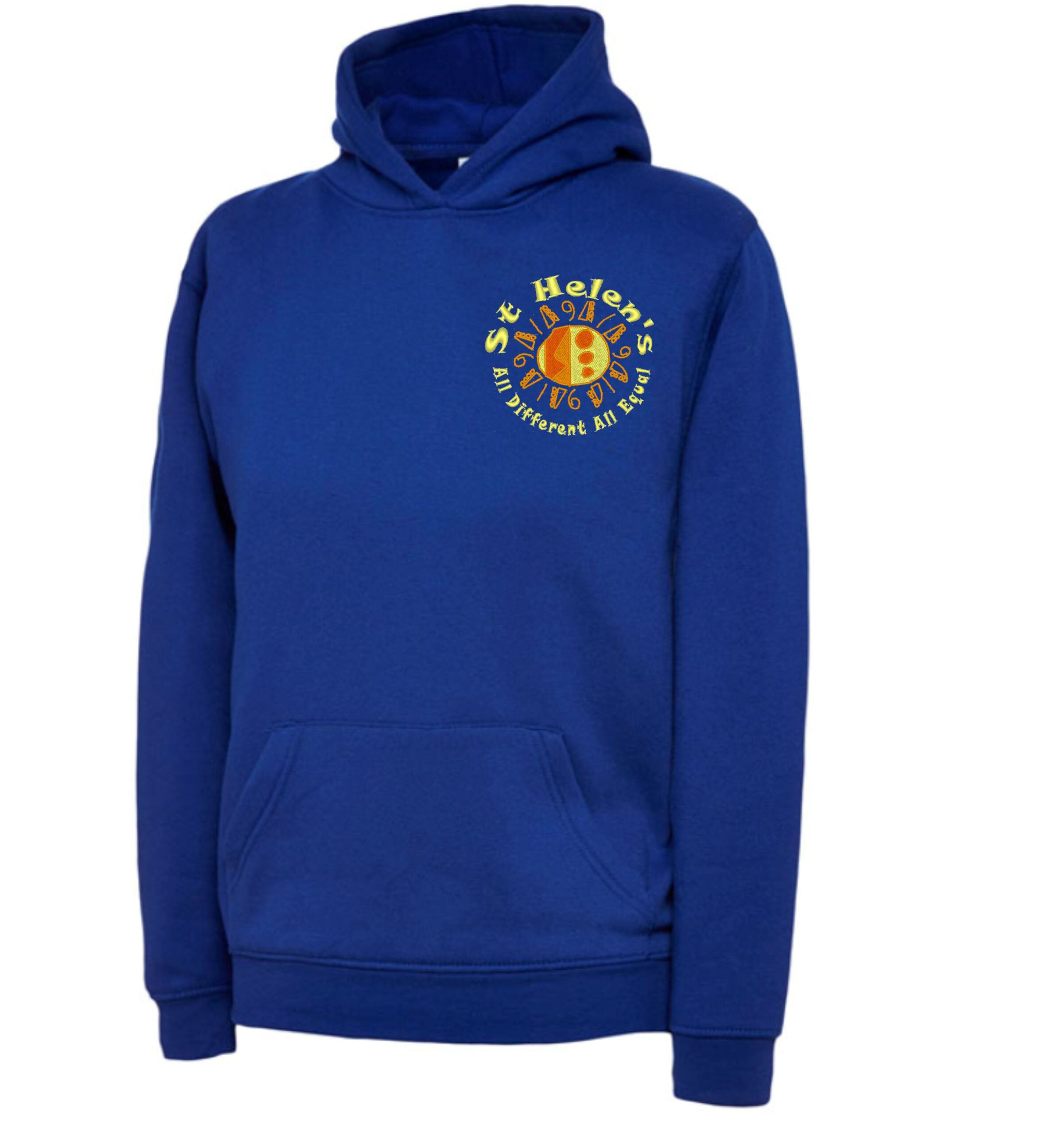 St Helens primary school hooded sweatshirt with St Helens school logo embroidered on the left breast.